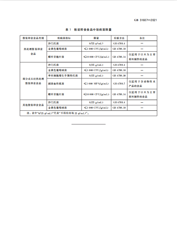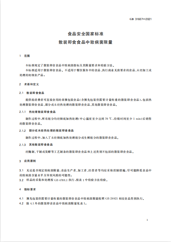 本標準規(guī)定了散裝即食食品中致病菌指標及其限量要求和檢驗方法。本標準適用于散裝即食食品。不適用于餐飲服務(wù)中的食品、執(zhí)行商業(yè)無菌要求的食品、未經(jīng)加工或處理的初級農(nóng)產(chǎn)品。